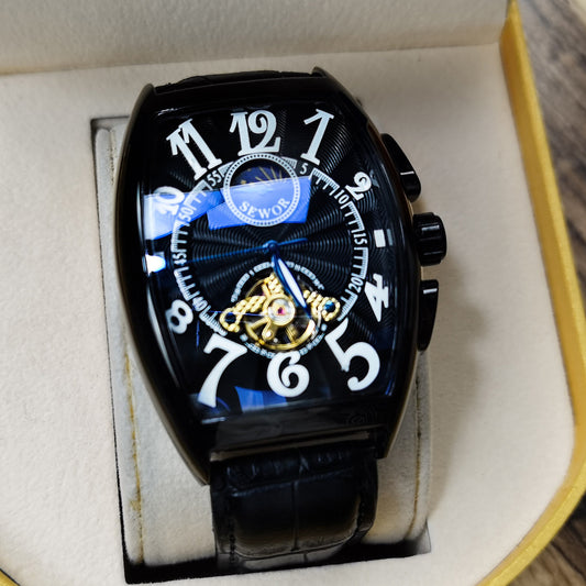 Barrel-Shaped Fully Automatic Skeleton Mechanical Watch For Men, Business Casual, Stylish And Multifunctional Watch