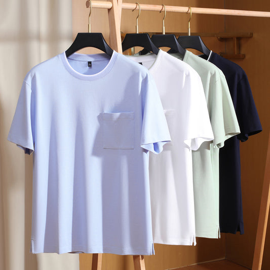 Short Sleeve T-Shirt Men Color Block Pocket Base Layer Men's Top