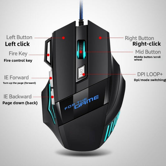 Cross-border Factory In Stock Wholesale G6 Wired Game Mouse 7-button Colorful Breathing Light-emitting Chicken E-sports Mouse