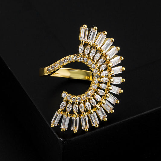 Ins New Copper Gold-Plated Micro-Set Zircon Adjustable Opening Creative Personality Hip-Hop Ring For Men And Women