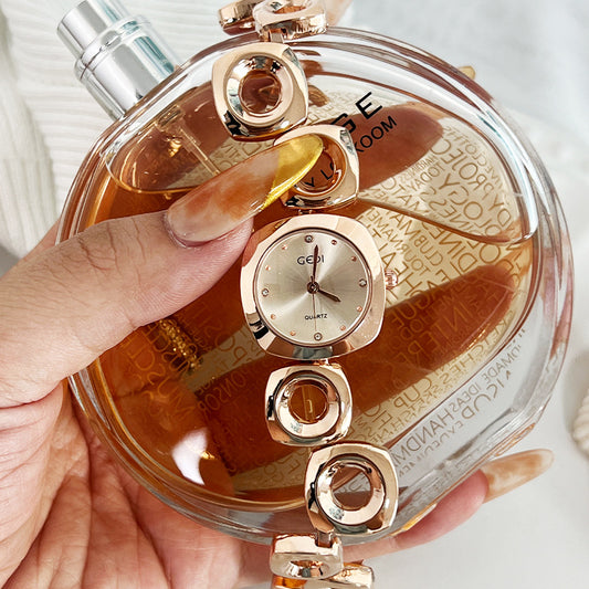 Goldie Light Luxury Irregular Bracelet Watch Temperament Artistic High-end Sense Quartz Watch Women's Outer Round Inner Alloy Watch