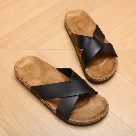 Summer Cross Flat Sandals For Outerwear Casual Cork Sole Plaid Fashion Shoes Easiest For Match Men's Beach Shoes