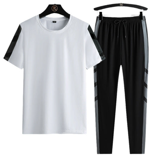 Summer Sports Outdoor Quick-drying Pants Half-length Pants Short-sleeved T-shirt Three-piece Set Ice Silk Suit Long Two-piece Suit