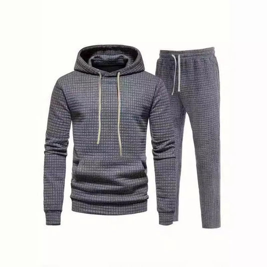 Cross-border Amazon Autumn And Winter Men's Long Sleeve, European And American Casual Jacquard Small Square Hooded Sports Suit