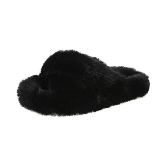 Plus Size New Style Of Autumn And Winter Korean Style All-Match Outer Wear Flat Bottom Fashionable Hairy Women's Slippers