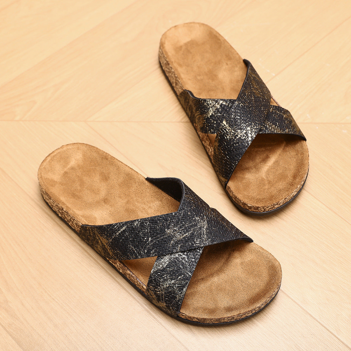 Step into summer with these expertly crafted Cross Flat Sandals designed for casual outdoor wear Featuring a comfortable cork sole and stylish plaid pattern these sandals blend fashion and function effortlessly Ideal for beach outings their versatile design makes matching with any summer outfit simple and chic ensuring all day comfort and style in warm weather.