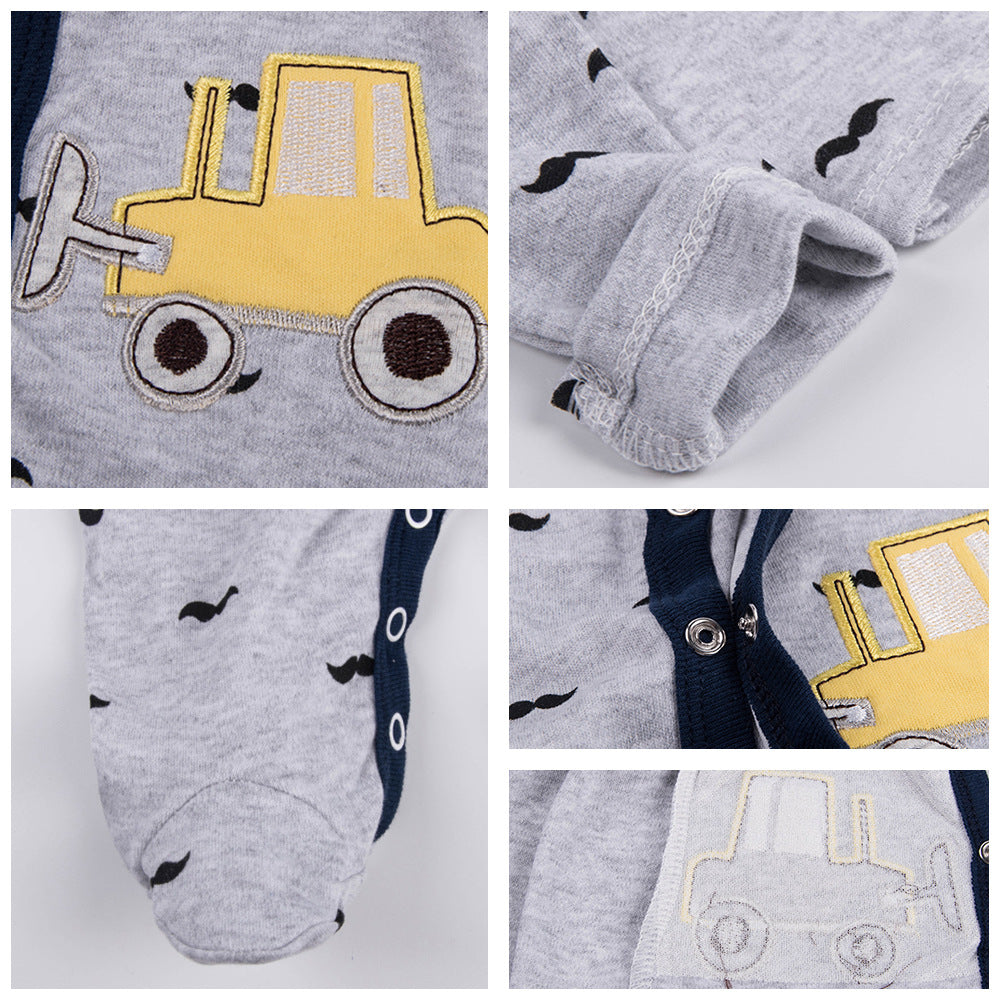This 3-piece baby bodysuit set offers soft, breathable comfort with 100% cotton fabric, ideal for sensitive skin. Featuring a kick-proof design with foot covers, it keeps your baby warm and cozy throughout all seasons. The long sleeves and secure single-breasted button closures provide easy dressing and added comfort. Carefully crafted to meet Category A safety standards, this set includes gender-neutral patterns suitable for any baby. Perfect for everyday use, it ensures both practicality and safety for your little one.