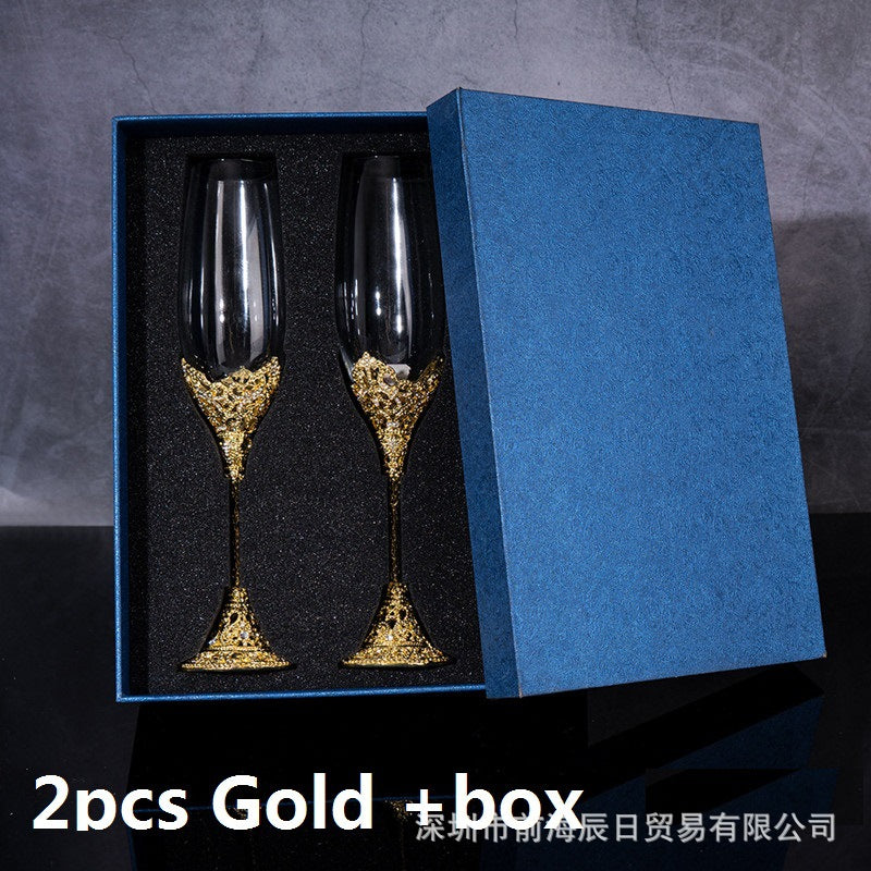 Cross-border Retro Hollow-out High-grade Champagne Mug Household Goblet Crystal Glass Wine Suit Luxury Gift Box