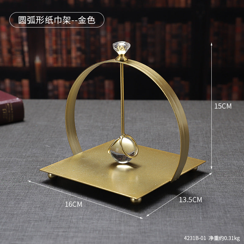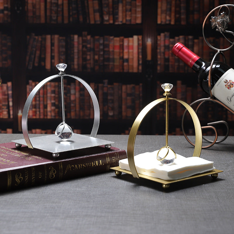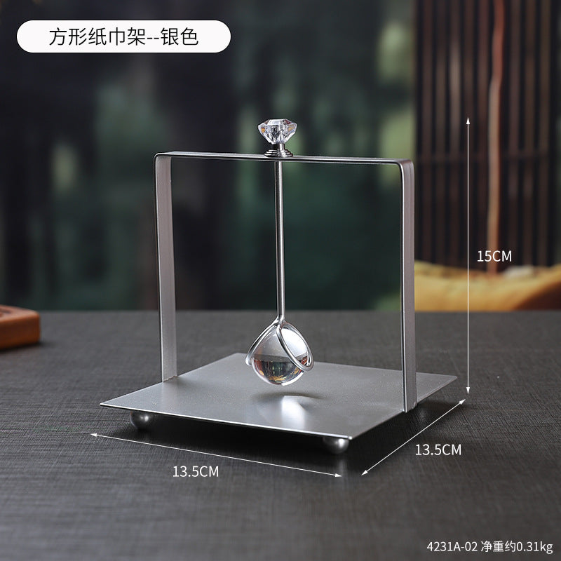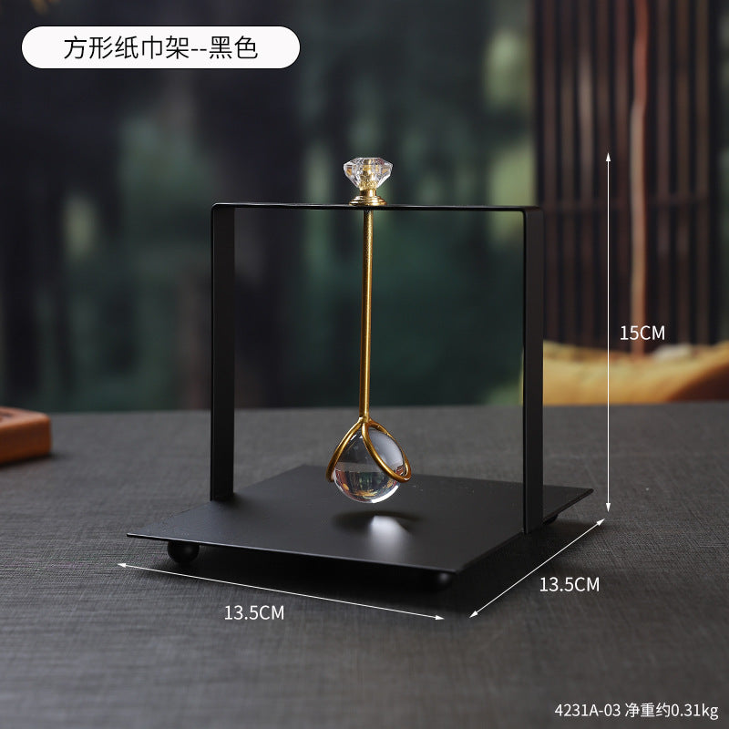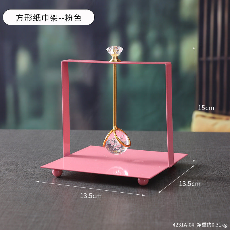 French Square Crystal Paper Towel Holder Creative Office Home Desktop Paper Towel Holder Light Luxury Metal Paper Towel Holder