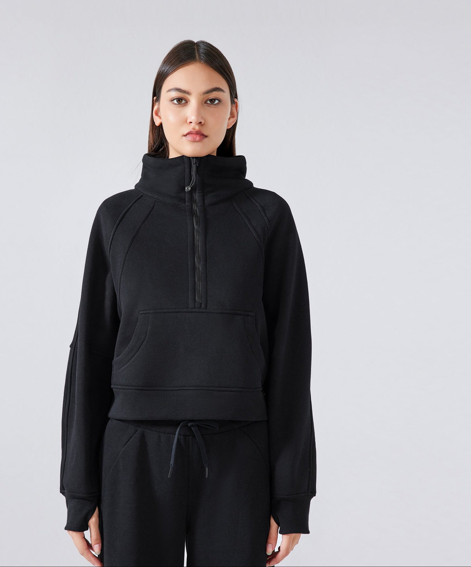 Half Zipper High Collar Pullover Top Women's Autumn And Winter New Outfit Warm Fleece Thickened Sports Sweat DAW150