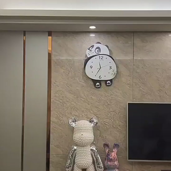 This Internet Celebrity Panda Wall Clock combines modern design with playful creativity, making it an ideal decorative piece for your living room or restaurant. Featuring a charming panda motif and a smooth swinging pendulum, it adds a unique touch to any space. Crafted for clear time visibility and reliable function, this wall clock blends aesthetic appeal with practical use, enhancing your home's ambiance with a cute yet sophisticated flair.