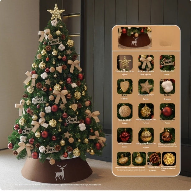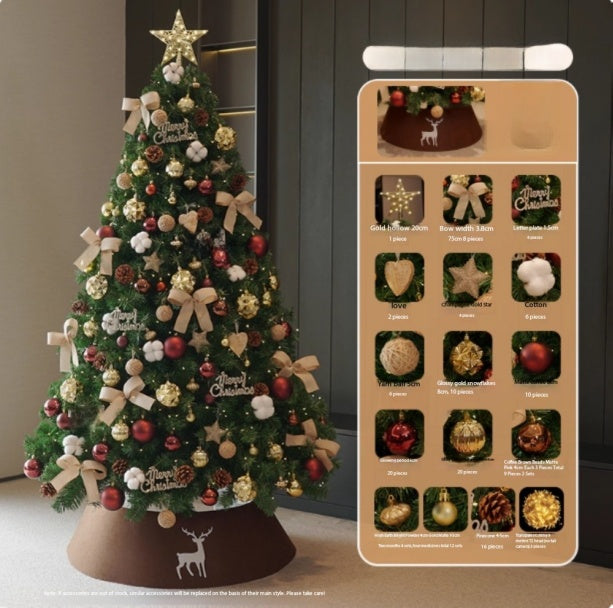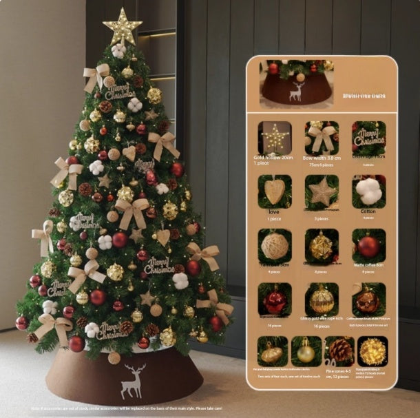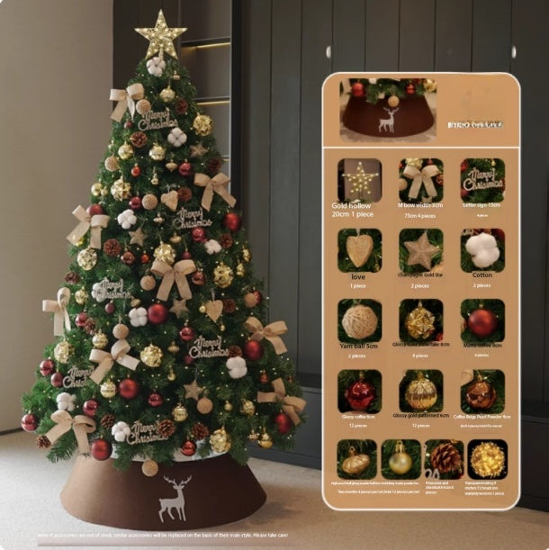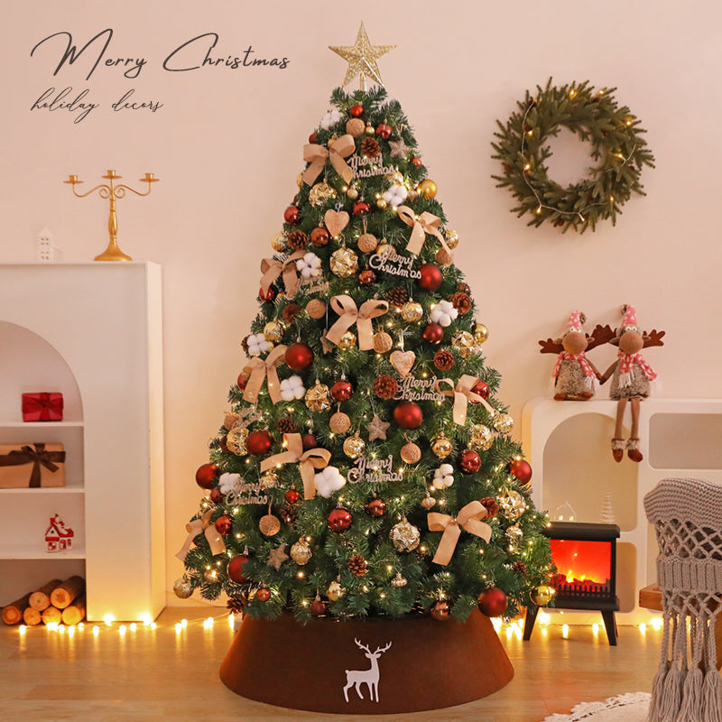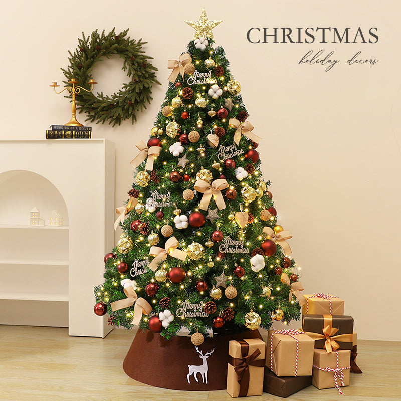 Elevate your holiday décor with our Large Christmas Decorative Items, featuring realistically simulated trees with encrypted branches for a full, lush look. Each tree comes with built-in LED lights—battery-operated or plug-in depending on the model—that add a warm, festive glow. Available in multiple sizes from 1.2m to 2.4m, these decorations fit perfectly in any space. The set includes carefully crafted accessories such as gift boxes, tree skirts, and figurines, enhancing the overall festive atmosphere. Made from a durable cotton/polyester blend with plastic and wood accents, these items are easy to assemble and customize for a personalized holiday display. Choose from elegant color options including brown cotton, snowy white, wooden cabin-style, and wine red.