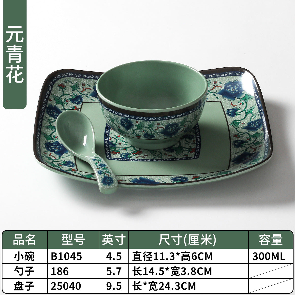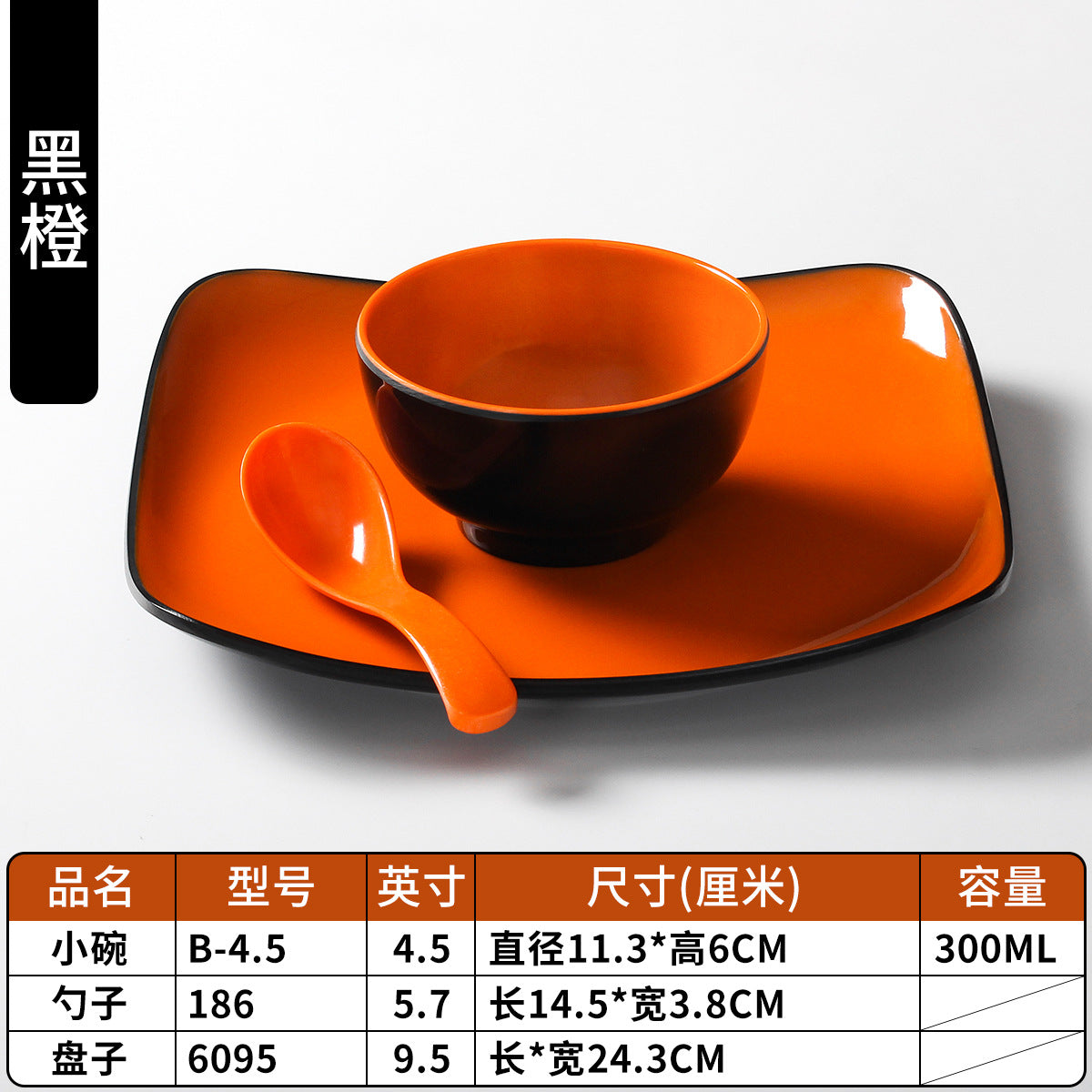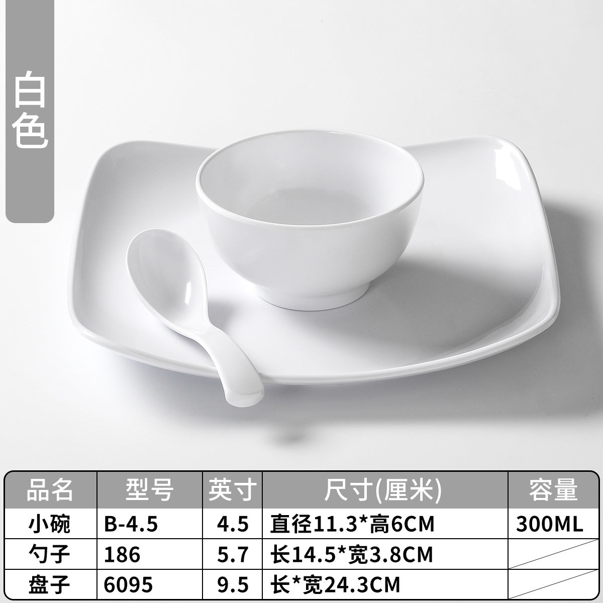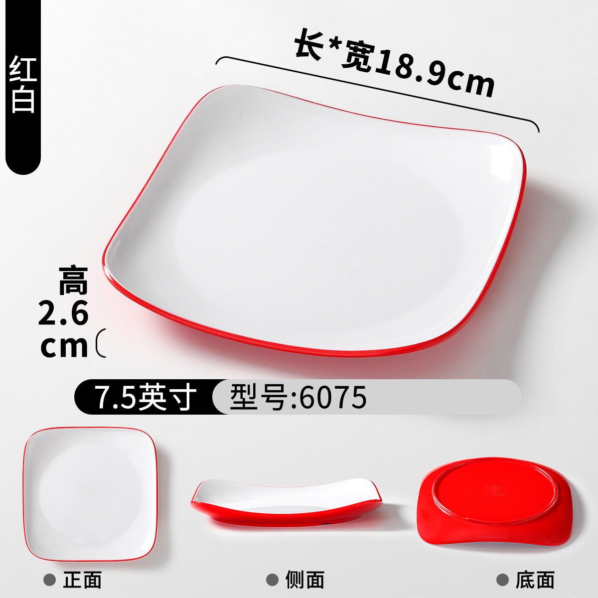 Melamine Covered Rice Plate Commercial Canteen Fast Food Restaurant Roast Meat Pork Feet Rice Braised Pork Rice Fried Rice Noodles Special Square Plate