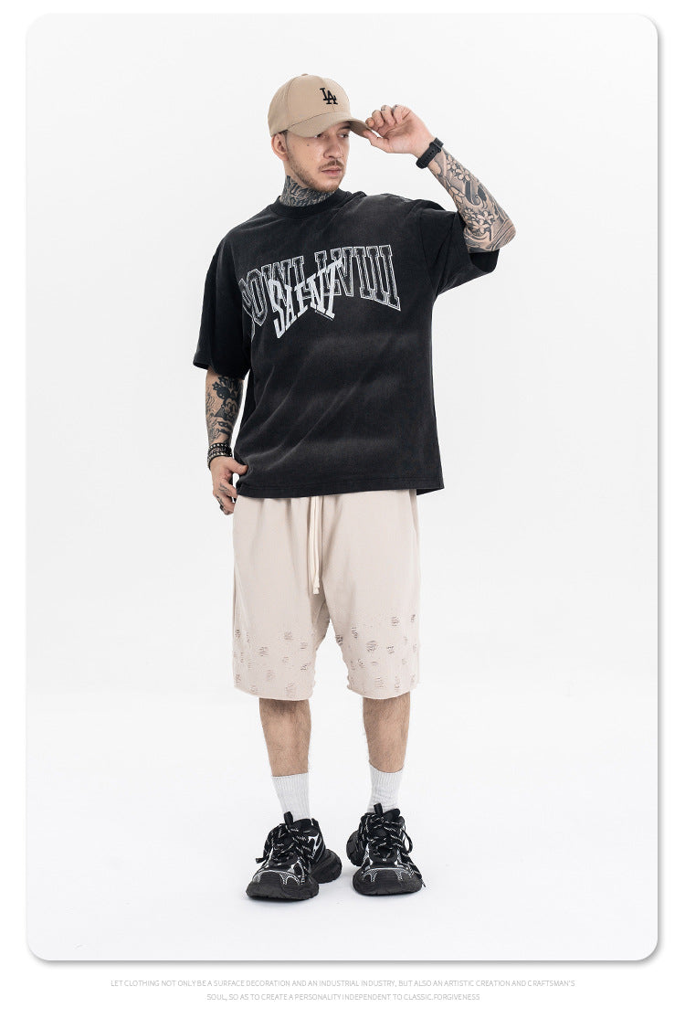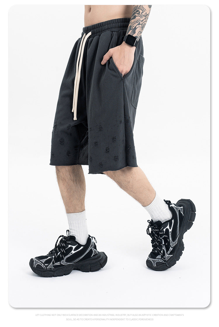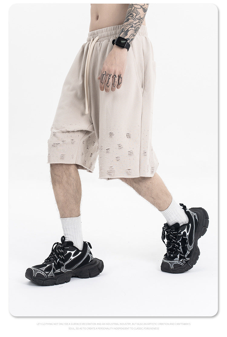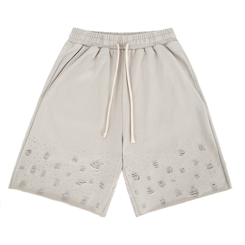 Men's Clothing Spring Solid Color Hole Heavyweight Sports Shorts Casual