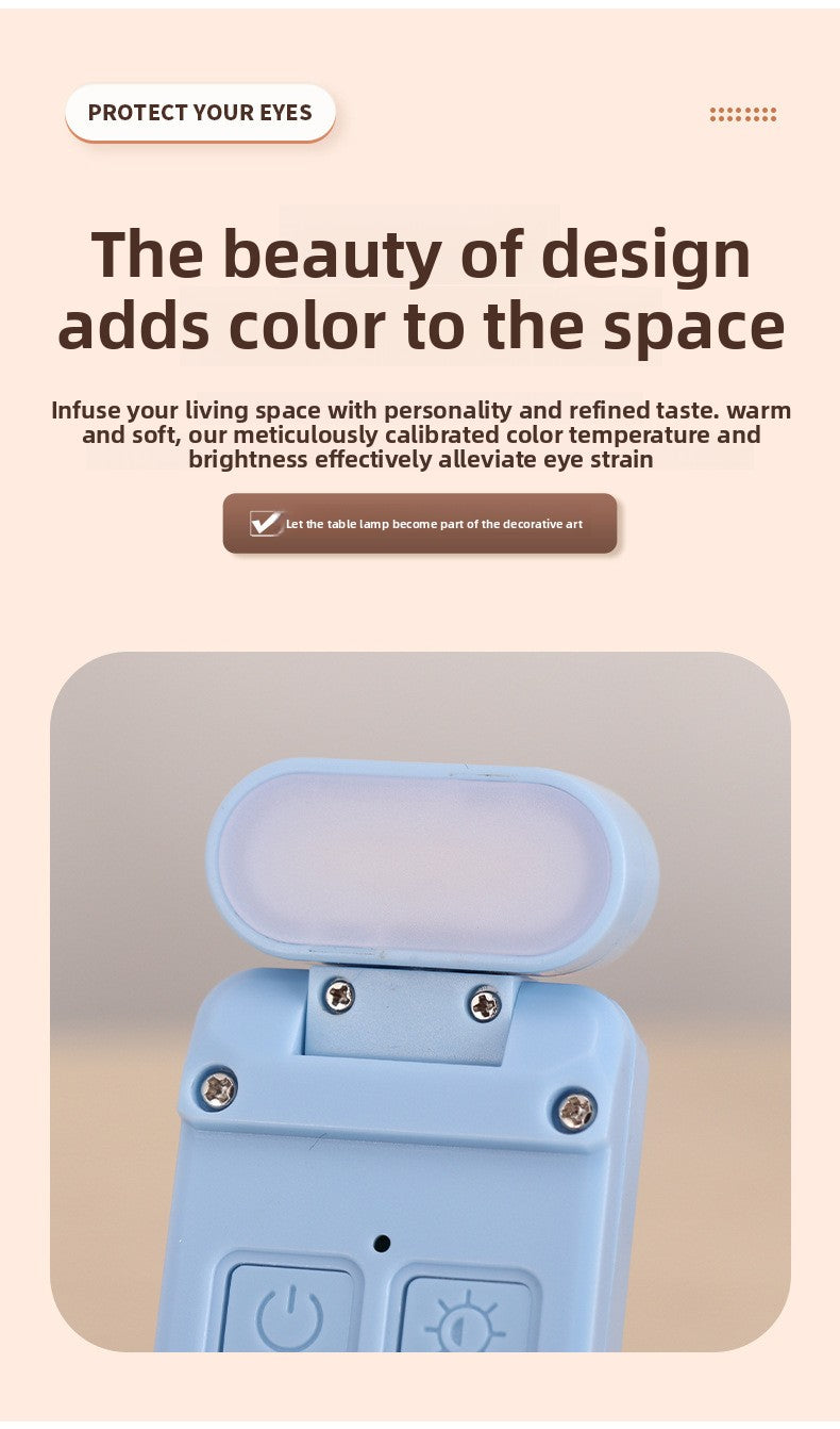 The Mini USB Clip Desk Lamp offers a portable, lightweight design with a secure clip for easy attachment to books or desks. Featuring USB charging and an eye-friendly LED light with a high color rendering index, it ensures comfortable reading. Its multifunctional use as a night light, study lamp, and ambient light is complemented by a simple button switch for effortless operation.