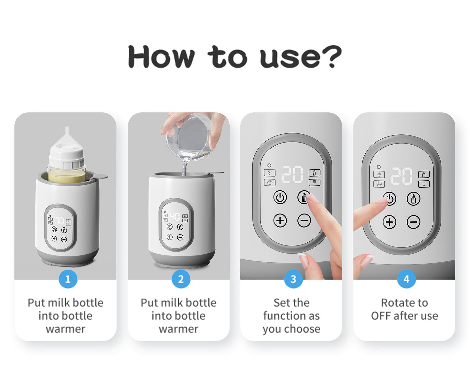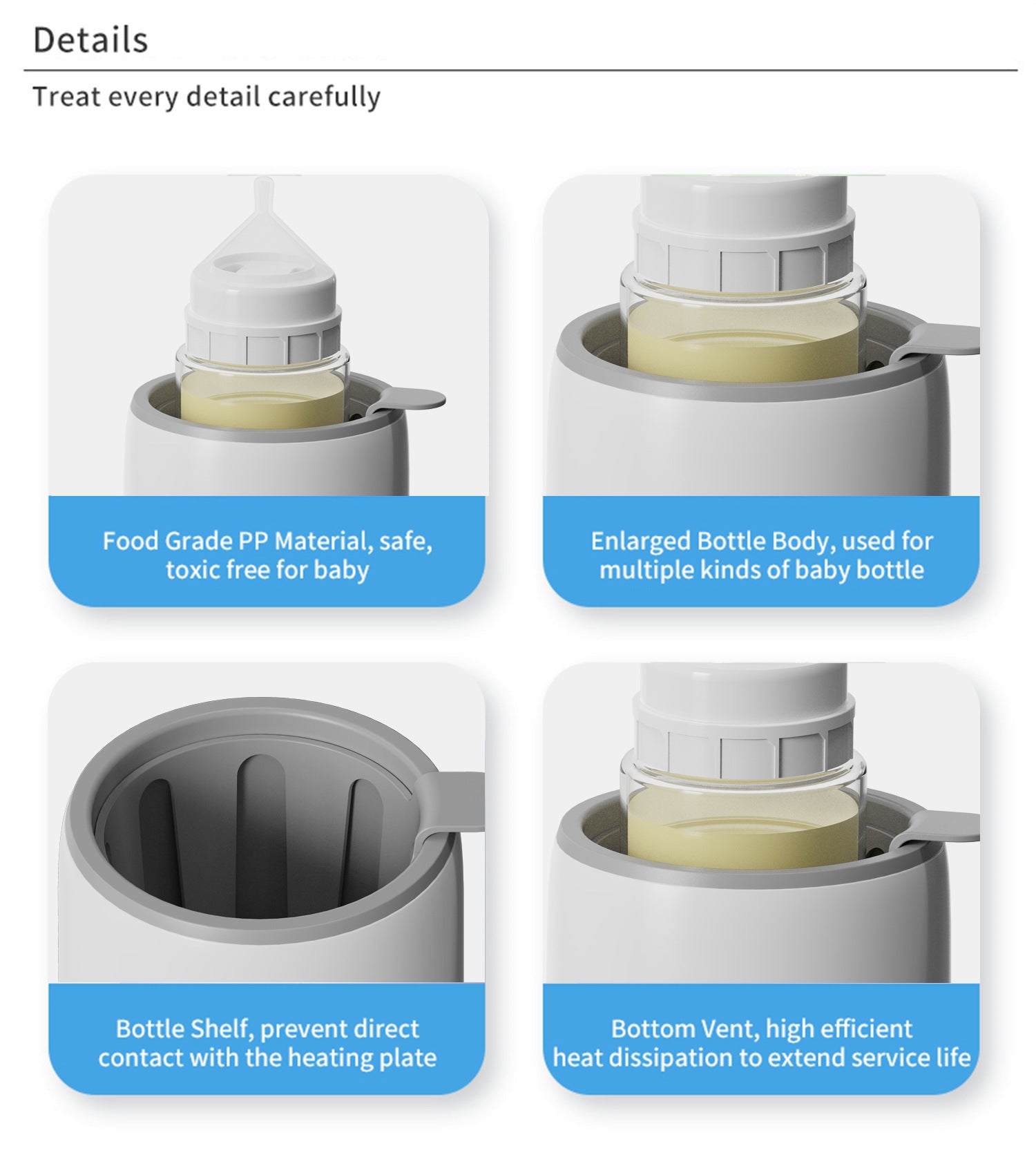 This multifunctional single-bottle warm milk dispenser combines efficient warming and sterilizing capabilities to ensure your baby's bottles are safe and ready. Its constant temperature control maintains milk at a stable, safe warmth, preventing overheating. Designed with compact dimensions (12 x 12 x 28 cm) and lightweight construction (600g), it offers convenient portability and easy storage. Operating at just 50W, it is energy efficient and environmentally friendly. Made from durable ABS plastic, this device is available in Ivory White, Sakura Pink, and Sky Blue, and comes with 3C safety certification for reliable peace of mind.