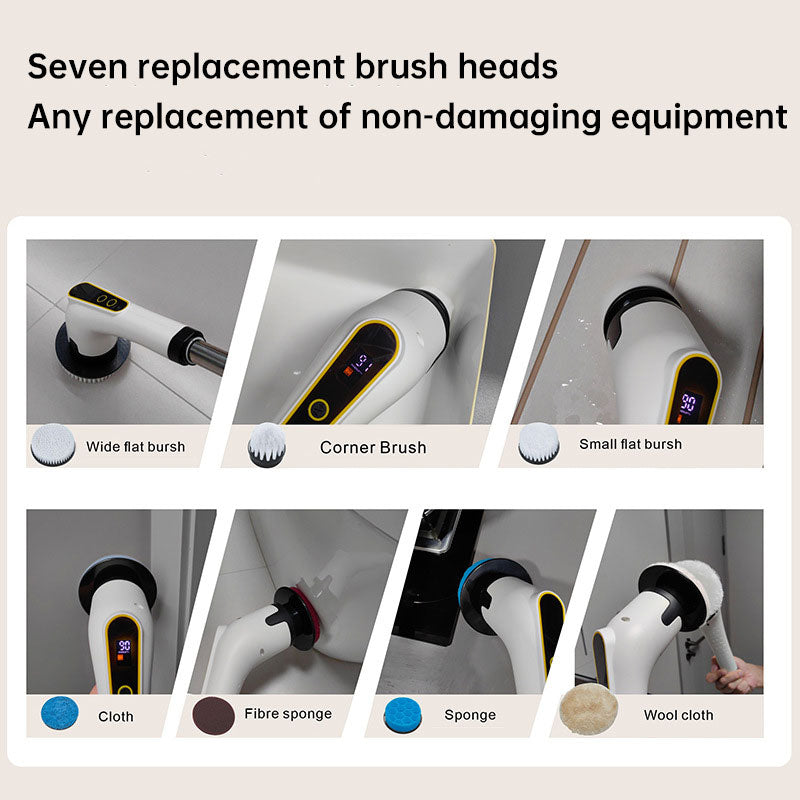 This seven-in-one wireless multi-function cleaning brush offers versatile and efficient cleaning for bathrooms and floors. Its long, retractable handle provides extended reach for hard-to-access areas, enhancing convenience and reducing strain. Designed for thorough cleaning of toilets and various surfaces, this brush combines multiple functions into one tool, streamlining your cleaning routine with professional results every time.
