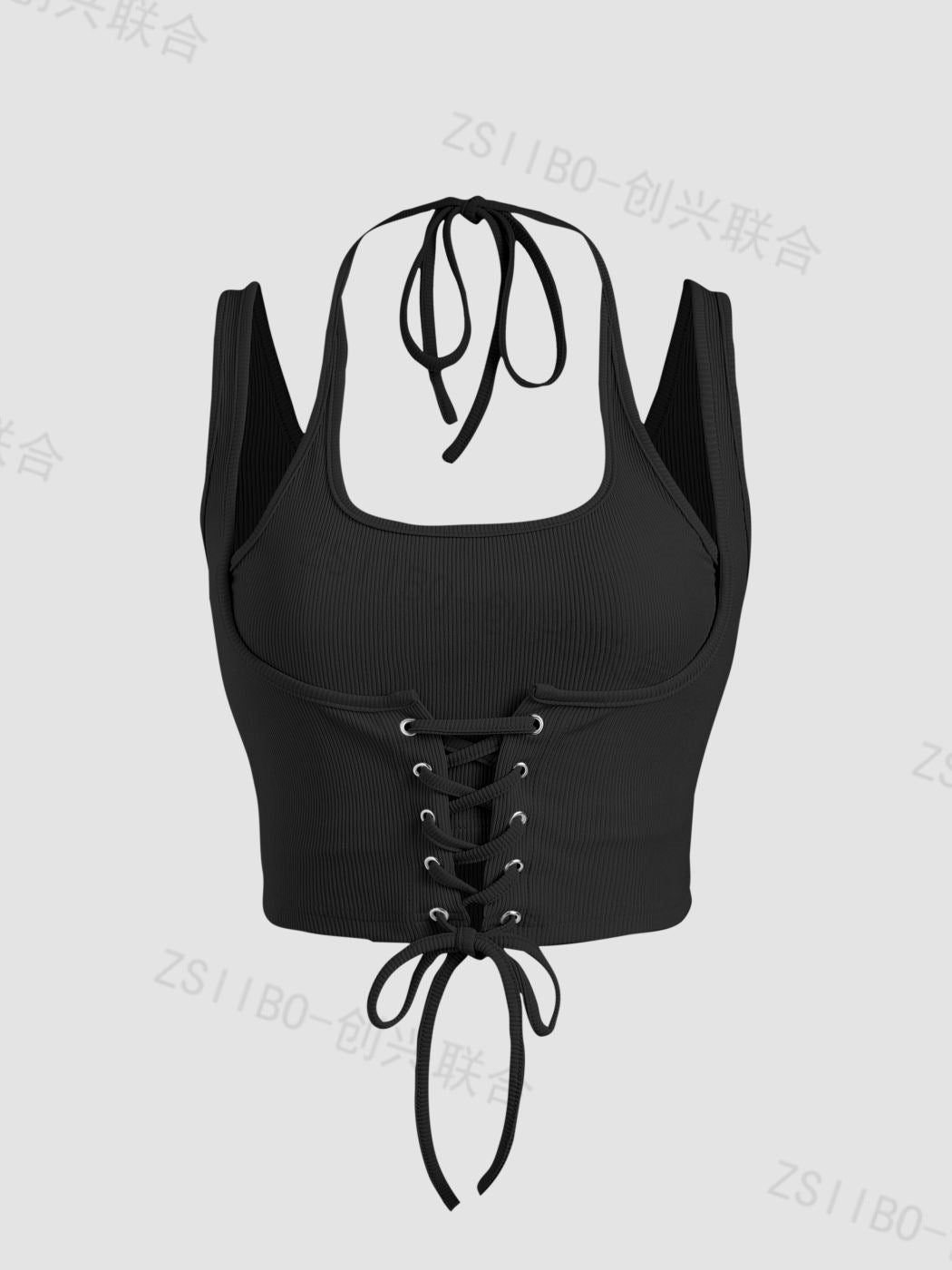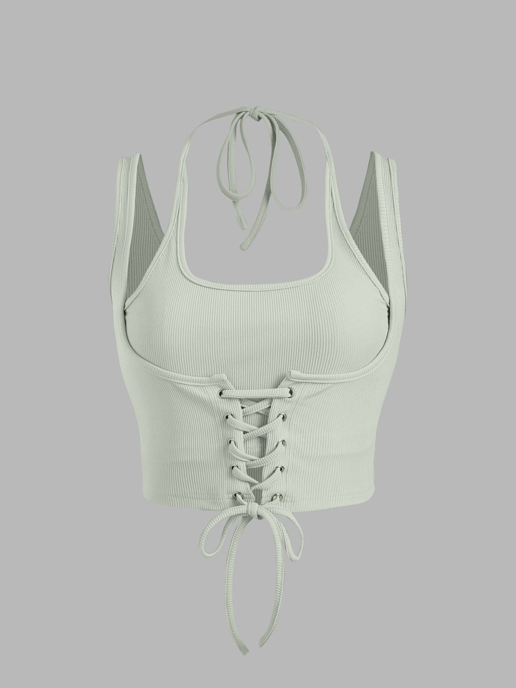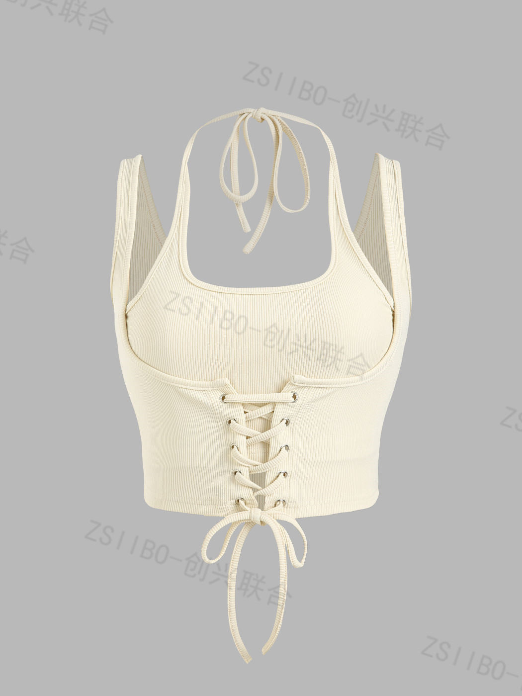 Strappy Halterneck Two-Piece Women's New Strappy Waistband Navel-Baring Vest Slim Sleeveless Short Top