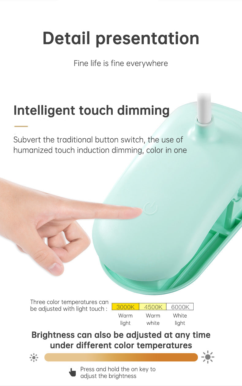 This versatile table lamp offers both rechargeable and plug-in power options, ensuring continuous use in any setting. Designed with eye protection features, it provides soft, flicker-free LED lighting ideal for study, work, or bedside reading. Its dual-purpose clamp design allows easy attachment to desks or bedside surfaces, making it perfect for dormitories, bedrooms, and learning environments. The adjustable illumination supports comfortable, focused lighting to reduce eye strain during extended use.