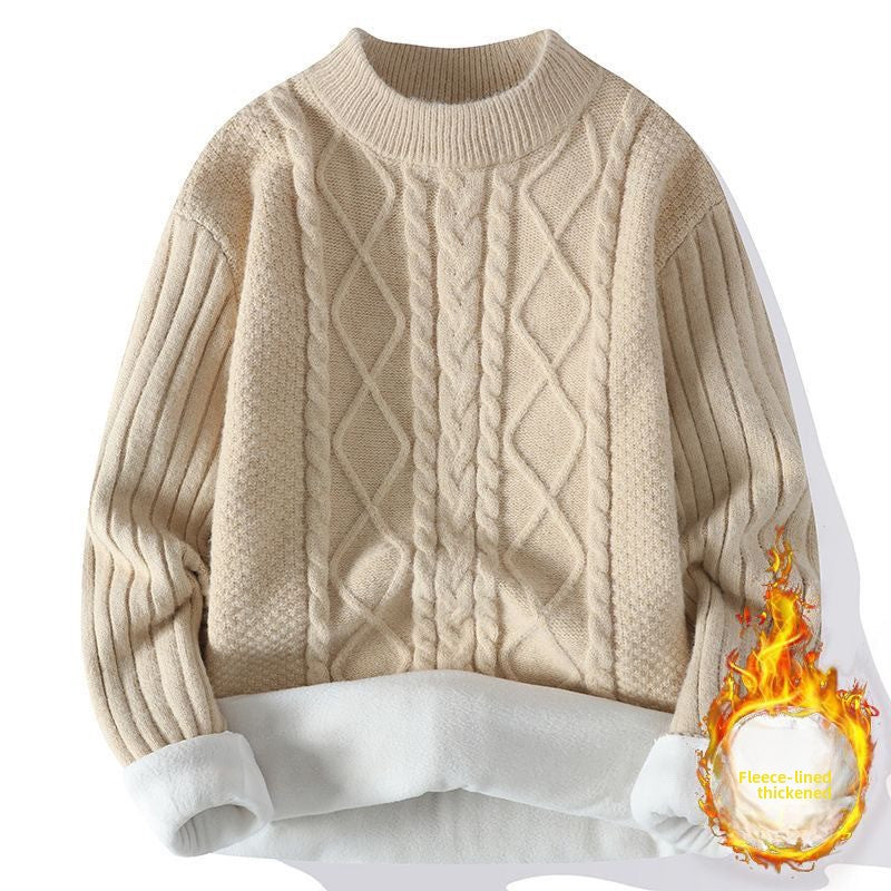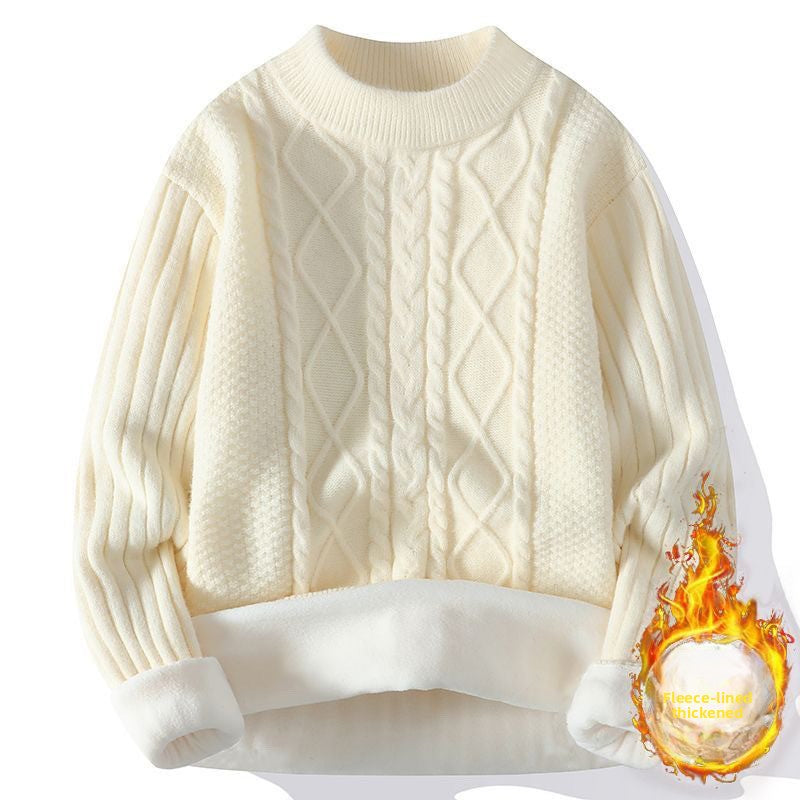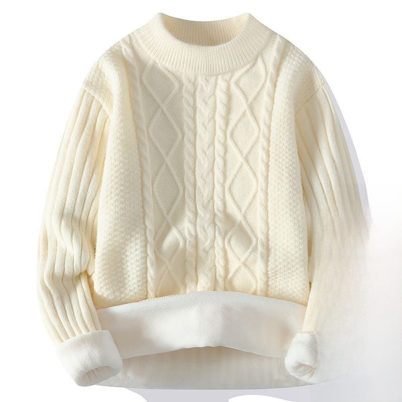This thickened twisted woolen sweater features a fleece lining for superior warmth and insulation. Its loose, cardigan-style fit with a round neck offers relaxed comfort and a modern Hong Kong-inspired look. Crafted from durable acrylic, it’s available in various colors and sizes for versatile, long-lasting wear.