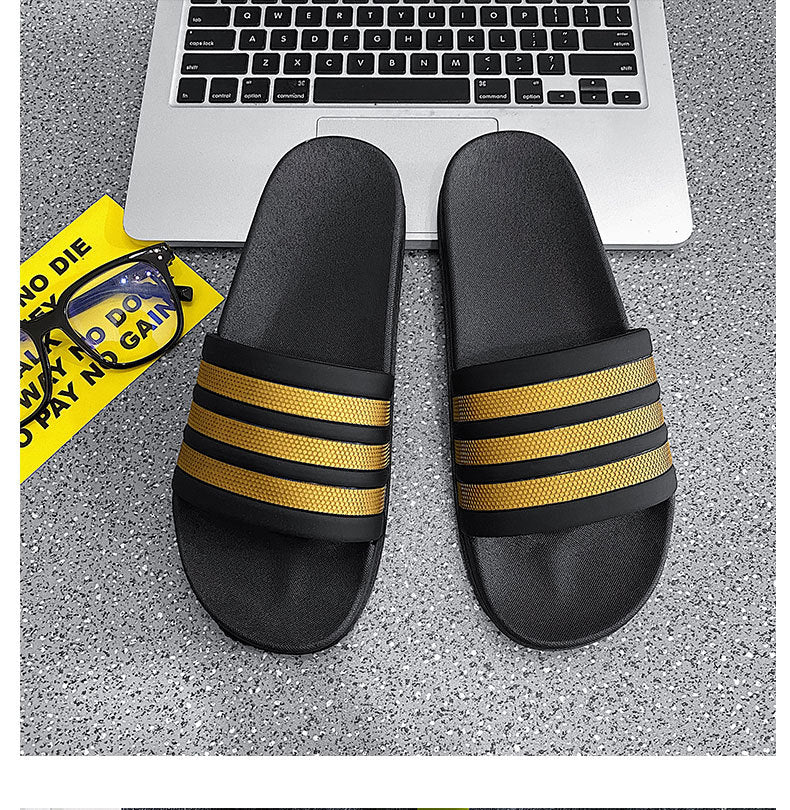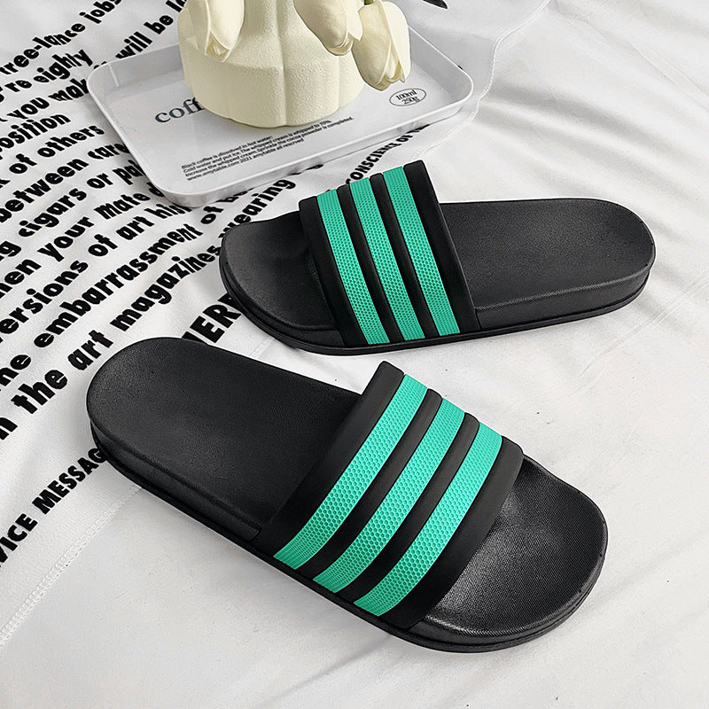 Three Bars Summer Korean Style Couple Casual Sandals And Slippers Student Fashionable Slippers Men's All-match Beach Shoes