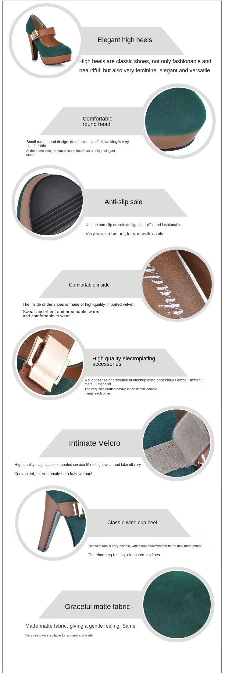 Step into style and comfort with these wide-leg platform high heels featuring a versatile hook and loop closure for easy wear. Crafted with durable artificial PU uppers and rubber outsoles, they offer lasting support through all seasons. The chunky 6-8cm heels and round toe design provide stability while elevating your look. Perfect for spring, summer, autumn, and winter, these low-cut shoes come in green, black, and blue to complement any outfit effortlessly.