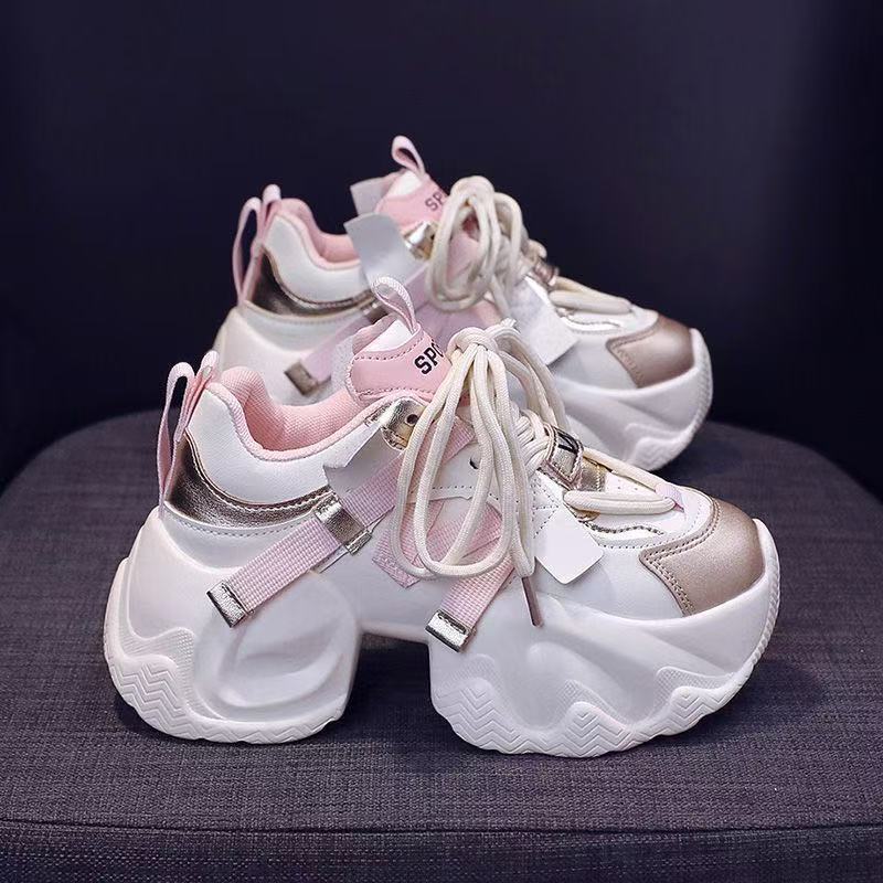 These women's casual sneakers combine a slimming thick 8cm sole with a lightweight design for all-day comfort. Featuring a stylish black and gold contrast, the synthetic leather upper includes breathable lining to keep your feet fresh. The durable rubber sole provides excellent wear resistance, while the lace-up closure and round toe shape ensure a secure, comfortable fit. Suitable for spring and autumn, they are available in sizes 35-40 EU to fit various foot lengths. Ideal for those seeking both fashion and functionality in everyday footwear.